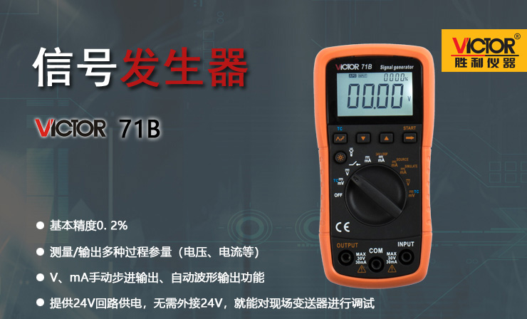 VICTOR 71B信號發生器 是一款小巧迷你型的手持過程信號發生器,可輸出測量電壓電流信號熱電偶信號。
