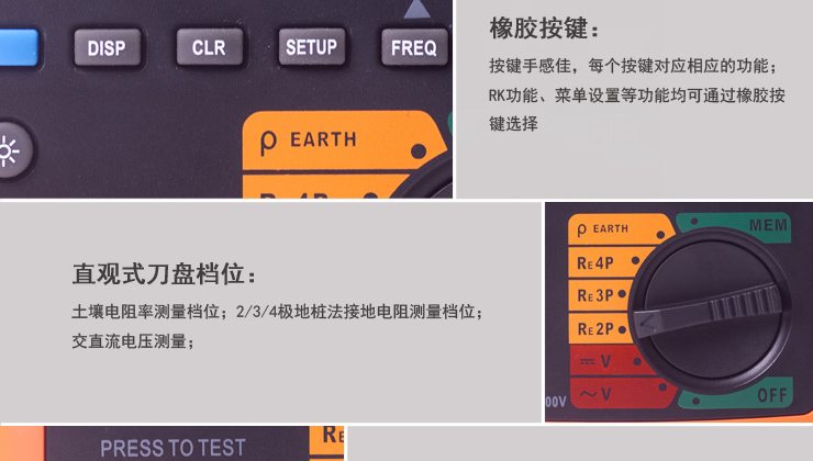 l 可測試包括了農業設備的配電線、室內配線、電氣機械器具等的接地電阻和土壤電阻率(ρ) 的測試。