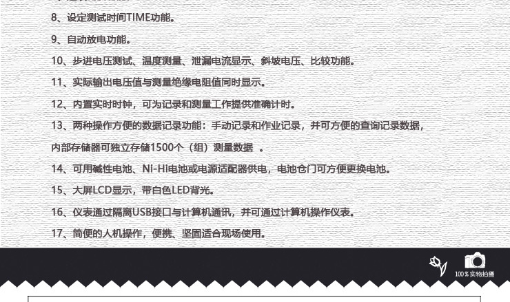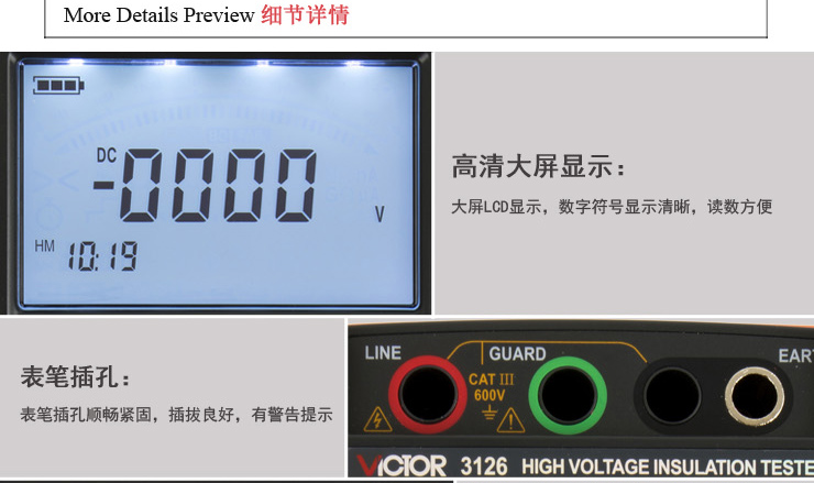 VICTOR 3126 絕緣電阻測試儀是一臺智能微型儀器即絕緣測試儀器,整機電路設計采用微機技術設計為核心,以大規模集成電路和數字電路相組合,配有強大的測量和數據處理軟件,完成絕緣電阻、電壓等參數測量,性能穩定,操作簡便。對于適用于現場電力設備以及供電線路的測量和檢修的用戶,本儀器是您的理想的選擇。