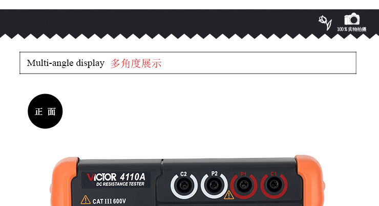 VICTOR 4110A 直流低電阻測試儀采用直流激勵4極法測量,適用于測量電纜的導線電阻,開關、接插件、繼電器的接觸電阻,線圈、電動機、變壓器繞組的電阻以及金屬鉚接電阻,金屬構件之間聯結電阻測試,低值電阻測試,地網地極間連接導體的電阻測試,接觸電阻測試。