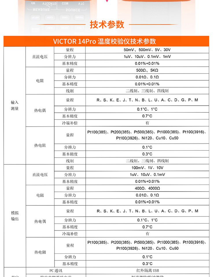 產品名稱:VICTOR 14Pro溫度校驗儀