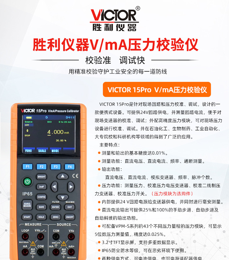產品名稱:VICTOR 15Pro VmA壓力校驗儀