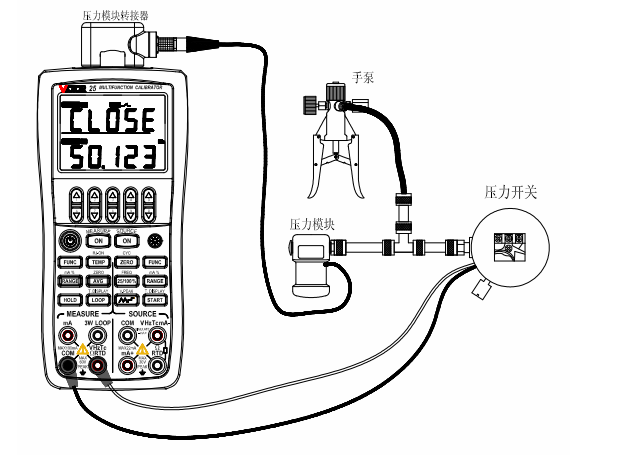 利用VICTOR25多功能校驗儀的開關量自動鎖定功能,可方便的校準壓力開關的開關調整點和回差。